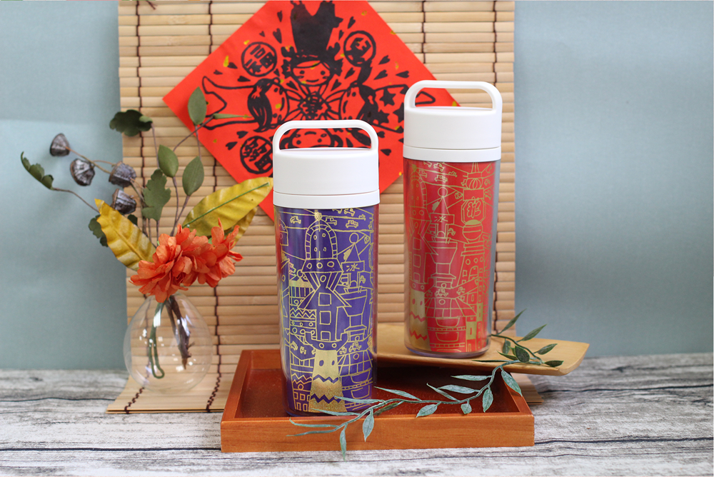 未來世界隨行杯 大紅款與大紫款各一